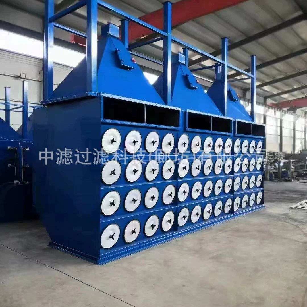 设备正面密集排列的圆形部件就是滤筒,它们采用折叠式滤料,比传统布袋的过滤面积大很多,能高效捕捉细微粉尘(如焊接烟尘、打磨粉尘、煤粉等)。